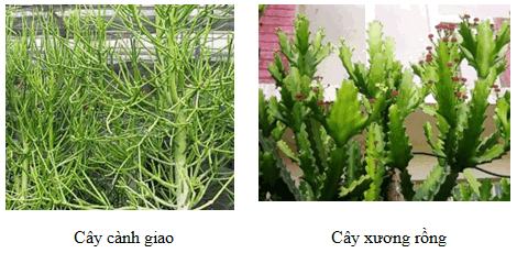Quan sát hình ảnh: Các cây như cây Xương rồng, Cành giao không có lá hoặc lá sớm dụng, thì