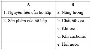 Nối nội dung ở cột A với nội dung tương ứng ở cột