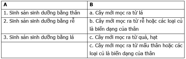 Nối nội dung ở cột A với nội dung tương ứng ở cột