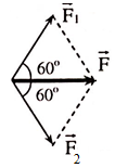 Cho hai lực đồng quy có độ lớn F1 = F2 = 45N. Góc tạo bởi hai lực là 1200. Độ lớn của hợp