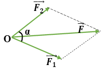 Độ lớn của hợp lực: \(F = \sqrt {F_1^2 + F_2^2 + 2{F_1}{F_2}.\cos \alpha } \)