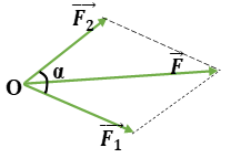 Độ lớn của hợp lực: \(F = \sqrt {F_1^2 + F_2^2 + 2{F_1}{F_2}.\cos \alpha } \)