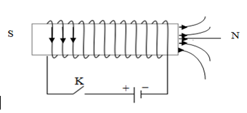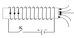 2.2. Cho cuộn dây dẫn kín và một kim nam châm được bố trí như hình vẽ. Khi đóng công tắc, kim nam châm bị hút vào ống dây.