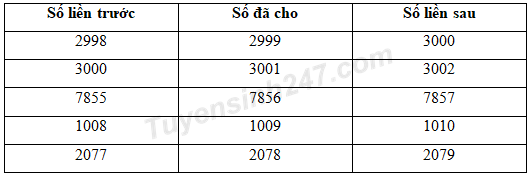 Viết số liền trước, số liền sau, của mỗi số: \(2999;3001;7856;\,1009;\,2078\)
