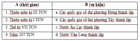 Nối ghép cột A với cột B cho phù hợp với nội dung có