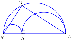 Cho nửa đường tròn đường kính \(AB\) và điểm \(M\) thuộc nửa đường tròn. Kẻ \(MH \bot
