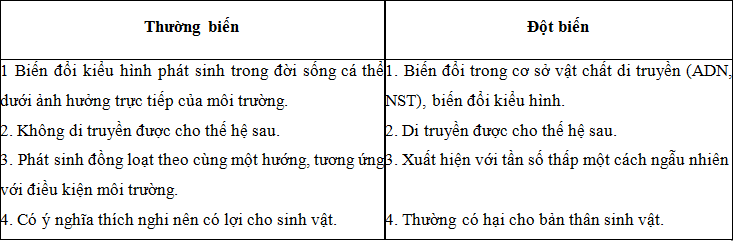 Phân biệt thường biến với đột biến ?