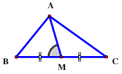 Tam giác \(ABC\) có \(AB = 3,BC = 8.\) Gọi \(M\) là trung điểm \(BC.\) Biết \(\cos \angle AMB = \frac{{5\sqrt