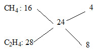 Sử dụng quy tắc đường chéo tính ra được tỉ lệ mol CH4 : C2H4