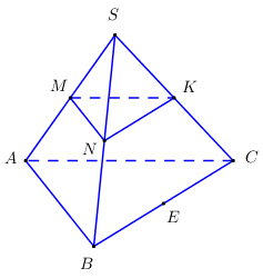 Cho hình chóp \(S.ABC\). Gọi \(M,\,\,N,\,\,K,\,\,E\) lần lượt là trung điểm của