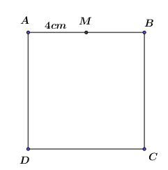 Cho hình vuông ABCD có M là trung điểm của AB, biết \(AM = 4cm.\)