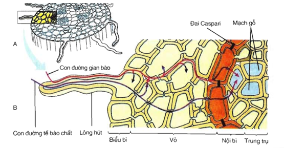 Con đường vẫ chuyển ion khoáng vào mạch gỗ của rễ: