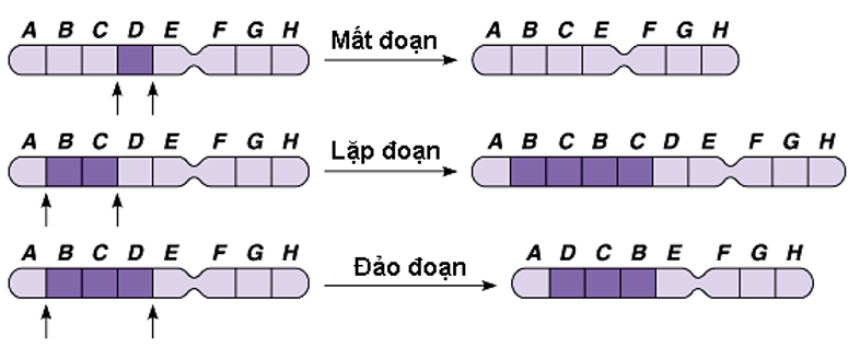 Các dạng đột biến cấu trúc nhiễm sắc thể gồm: mất đoạn, lặp đoạn và....