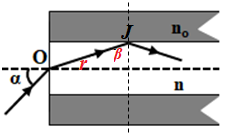 Áp dụng định luật khúc xạ đối với mặt trước của sợi quang: \(\sin \alpha =n\sin r\)
