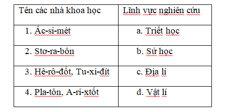 Nối tên các nhà khoa học sao cho phù hợp lĩnh vực nghiên