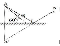 Một vật sáng AB đặt trước một gương phẳng (hình vẽ). Góc tạo bởi vật và gương phẳng bằng 600.