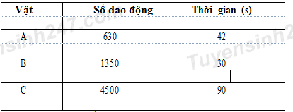 Có 3 vật dao động với kết quả sau: Hãy tính tần số của 3 vật, từ đó cho biết: a) Vật
