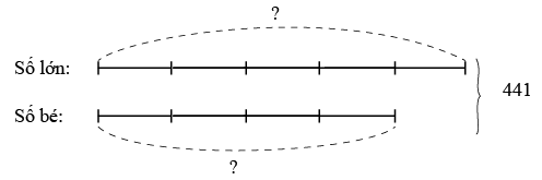 Vẽ sơ đồ đoạn thẳng biểu diện số bé, số lớn. Rồi giải tìm ra hai số đó.