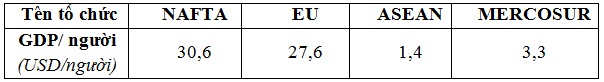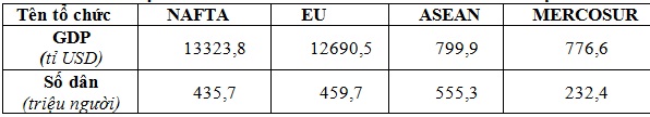 GDP CỦA MỘT SỐ TỔ CHỨC LIÊN KẾT KINH TẾ KHU VỰC NĂM 2004