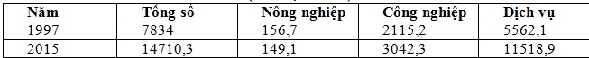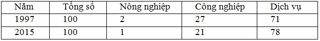 Cho bảng số liệu: GDP PHÂN THEO CÁC NGÀNH KINH TẾ CỦA HOA KÌ GIAI ĐOẠN 1997 -