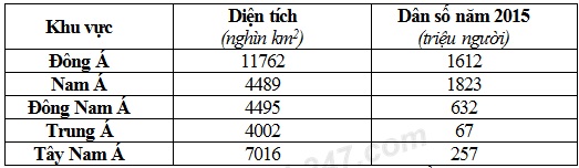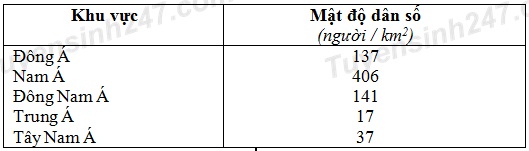 Hãy tính mật độ dân số của các khu vực trên.