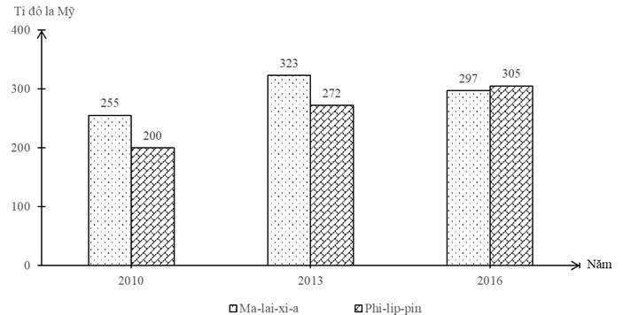 Cho biểu đồ về GDP của Ma-lai-xi-a và Phi-lip-pin qua các năm: (Nguồn số liệu theo Niên giám