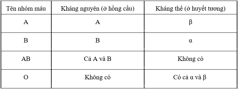 - Ở người có 4 nhóm máu là A, O, B, AB: