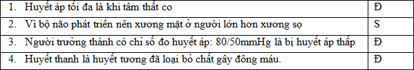 Chọn đúng sai trong những câu dưới đây và điền Đ,S vào ô trống cuối
