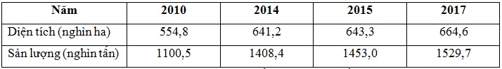 Cho bảng số liệu: DIỆN TÍCH VÀ SẢN LƯỢNG CÀ PHÊ CỦA NƯỚC TA GIAI ĐOẠN 2010- 2017 (Nguồn: