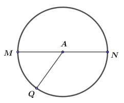MN là đường kính của hình tròn tâm A, bán kính AQ bằng bán kính AM, bằng bán kính AN bằng một nửa đường kính.