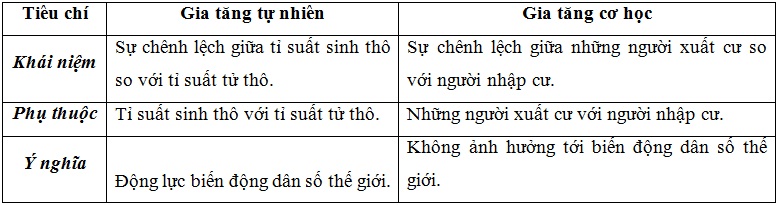 Phân biệt giữa gia tăng dân số tự nhiên và gia tăng dân số cơ học.