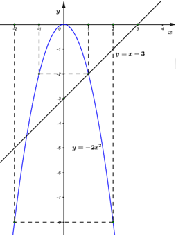 Cho parabol \(\left( P \right):\,\,y = - 2{x^2}\) và đường thẳng \(\left( d \right):\,\,y = x - 3.\)