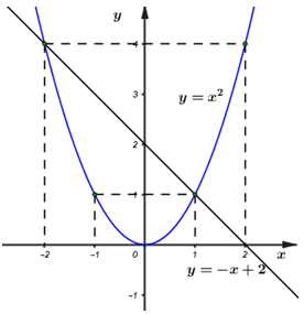 Cho hai hàm số \(y = {x^2}\,\,\,\,\left( P \right)\) và \(y = - x + 2\,\,\,\left( d \right).\)