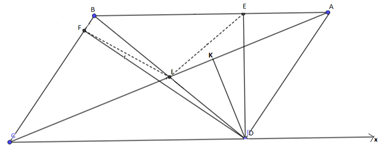 1) Cho hình bình hành \(ABCD\) có \(\angle ABC > {90^0}\), hạ \(DE,\,\,DF,\,\,DK\) lần lượt vuông góc với \(AB,\,\,BC,\,\,AC.\) Gọi \(I\) là giao điểm của \(AC\) và \(BD.\) Chứng minh rằng các điểm \(E,\,\,F,\,\,I,\,\,K\) cùng thuộc một đường tròn.