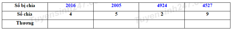 + Bước 2: Chia lần lượt từ trái sang phải.