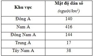 a) Tính mật độ dân số của các khu vực ở Châu Á.
