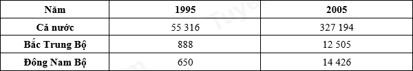 Cho bảng số liệu sau SẢN LƯỢNG TÔM NUÔI PHÂN THEO ĐỊA PHƯƠNG GIAI ĐOẠN 1995-2005 (Đơn vị: