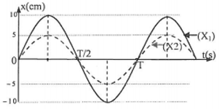 Có hai con lắc lò xo giống nhau đều có khối lượng vật nhỏ là m = 400 g. Mốc thế năng tại vị trí cân bằng. \({{x}_{1}};\,\,{{x}_{2}}\) lần lượt là đồ thị li độ theo thời gian của con lắc thứ nhất và thứ 2 như hình vẽ. Tại thời điểm t, con lắc thứ nhất có động năng 0,06 J và con lắc thứ hai có thế năng 0,005 J. Lấy \({{\pi }^{2}}=10\). Chu kì của hai con lắc là