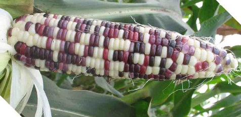 Bắp ngô trong ảnh phía dưới có hạt trắng xen lẫn hạt tím. Đây là kết quả của sự thụ