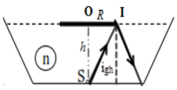 Một đèn sáng nhỏ S nằm dưới đáy của một bể nước sâu \(20cm\). Thả nổi trên mặt nước một tấm gỗ mỏng tròn tâm O bán kính R ở trên mặt chất lỏng mà tâm O ở trên đường thẳng qua S. Thấy rằng không có tia sáng nào của ngọn đèn ra ngoài không khí. Chiết suất của nước là \(\dfrac{4}{3}\). Giá trị nhỏ nhất của R là: