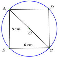 Cho hình chữ nhật \(ABCD\) nội tiếp đường tròn \(\left( {O;\,\,R} \right),\) biết \(AB = 8\,cm,\,\,BC = 6\,cm.\) Độ dài bán kính \(R\) là: