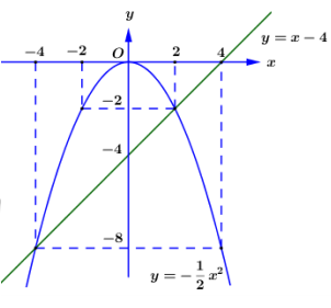 Cho hai hàm số \(y = - \frac{1}{2}{x^2}\) và \(y = x - 4.\)