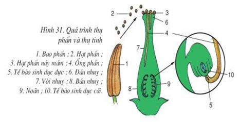 3. Ống phấn xuyên qua đầu nhụy và vòi nhụy vào trong bầu, khi gặp noãn, phần đầu của ống phấn mang tế bào đực chui vào noãn.