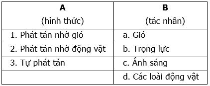 Nối nội dung ở cột A (hình thức phát tán) với nội dung tương ứng ở cột B (tác nhân):