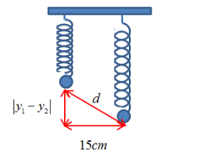 Khoảng cách giữa hai chất điểm: \(d=\sqrt{{{x}^{2}}+{{y}^{2}}}\)