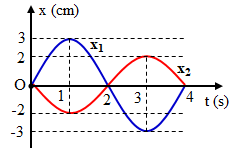 Đồ thị của hai dao động điều hòa cùng tần số có dạng như hình vẽ. Phương trình nào sau
