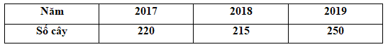 Cho số cây trồng được của một xã vào các năm 2017; 2018; 2019 lần lượt là: 220; 215; 250