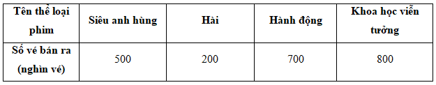 Dựa vào bảng số liệu đã cho tính tổng số vé bán ra của các thể loại phim có trong bảng thống kê.