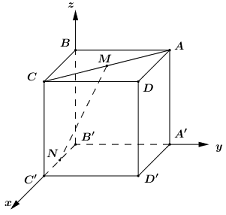 Cho hình lập phương \(ABCD.A'B'C'D'\) cạnh \(a\). Gọi \(M,\,\,N\) lần lượt là trung điểm của \(AC\)