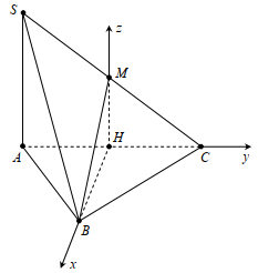Cho hình chóp \(S.ABC\) có đáy \(ABC\) là tam giác đều cạnh \(a\), cạnh \(SA\) vuông góc với mặt đáy và \(SA = 2a\). Gọi .. là trung điểm của \(SC\). Tính cosin góc giữa đường thẳng \(BM\) và mặt phẳng \(\left( {ABC} \right)\).